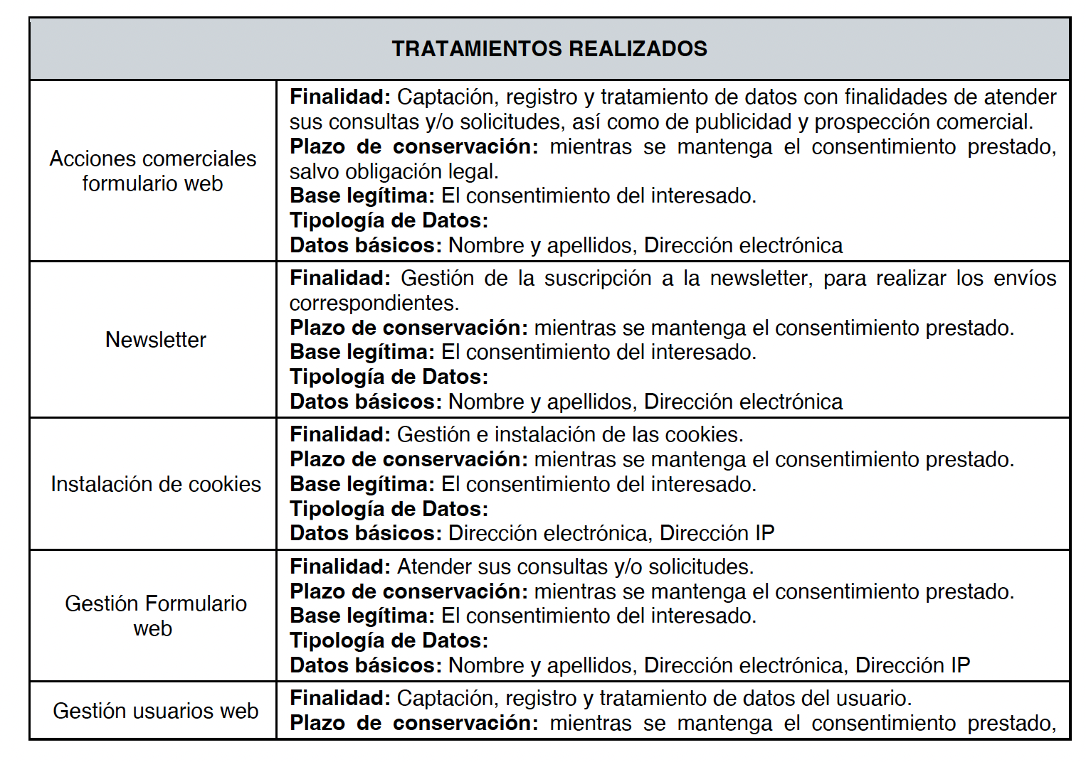 Derecho de Acceso: Es el derecho del usuario a obtener confirmación sobre si se están tratando sus datos y, en tal caso, los concretos datos personales tratados y la información legal del tratamiento (finalidades, base legitimadora, plazos de conservación, cesiones, origen de los datos, etc.).
